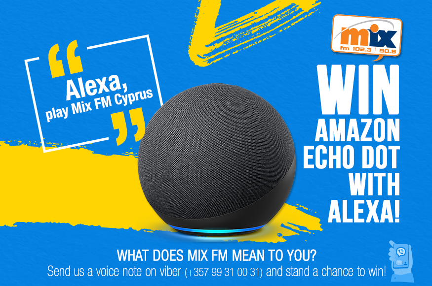 Γιορτάζουμε τα γενέθλιά μας μ' έναν ξεχωριστό διαγωνισμό. Οι ακροατές και φίλοι του Mix FM καλούνται να στείλουν ηχητικό μήνυμα στο Viber του Μix FM (+35799310031) απαντώντας στην ερώτηση "Tι είναι το ραδιόφωνο/Μix FM για σένα;". Με τον τρόπο αυτό μπαίνουν αυτόματα στην κλήρωση για το Amazon Echo Dot with ALEXA 4ης γενιάς η οποία θα λάβει χώρα την Παρασκευή 4 Μαρτίου 2022.