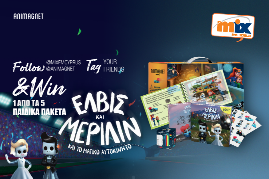 Για να συμμετέχεις στην κλήρωση μπες στην σελίδα του Mix FM στο Instagram, κάνε follow @mixfmcyprus, @animagnet, @elvismerilyn_official, like στην φωτογραφία του διαγωνισμού και tag 2 φίλους σε comment.