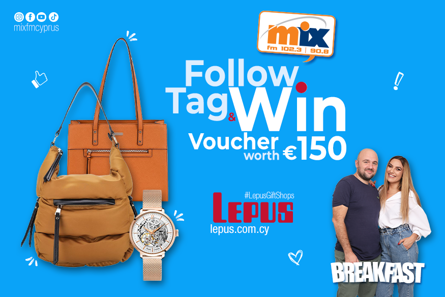 Μπες στη σελίδα του Mix FM Breakfast Show στο Instagram, follow @mixfmbreakfastshow και @lepusgiftshop, κάνε tag ένα φίλο/η σou και μπες στην κλήρωση η οποία θα γίνει την Δευτέρα 22 Νοεμβρίου.