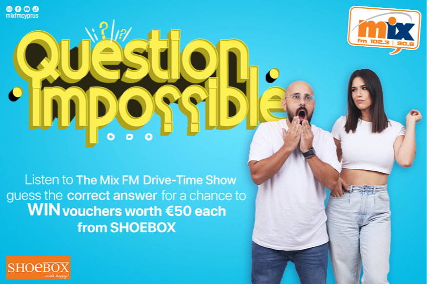 Συντονίσου καθημερινά στο Drive-Time Show, άκου την ερώτηση που θέτουν η Έλενα και ο Στέλιος, βρες τη σωστή απάντηση και στείλε γραπτό μήνυμα στο 3131 ή στο viber 99 31 00 31 και μπες στην κλήρωση για να κερδίσεις ένα voucher αξίας €50 από τα καταστήματα SHOEBOX!