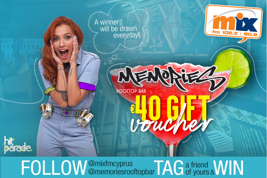 Διαδικασία: Μπείτε στην σελίδα του Mix FM στο Instagram, follow @mixfmcyprus, follow @memoriesrooftopbar, like στο σχετικό post, tag το άτομο που θα διασκεδάζατε μαζί και μπείτε στην κλήρωση!