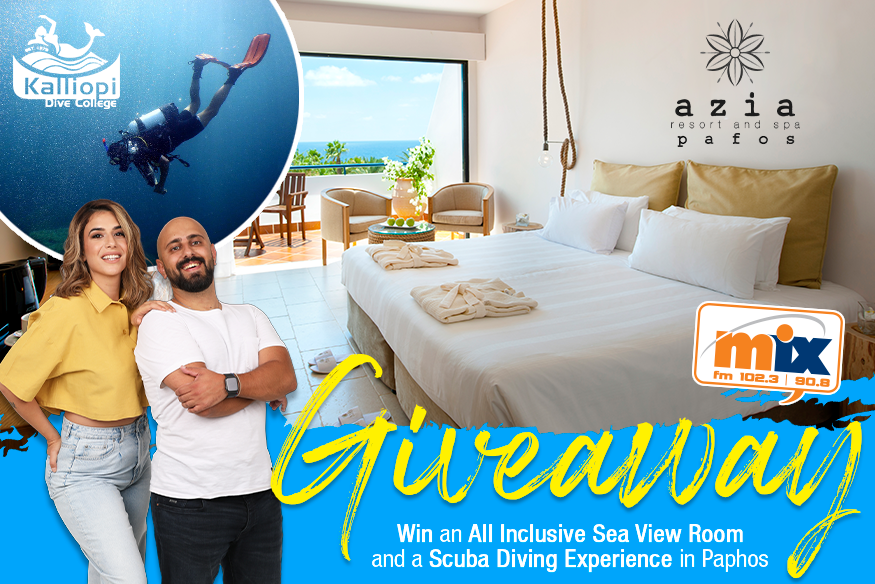 Το Mix FM Drive-Time Show σε πάει διακοπές στην Πάφο και σου χαρίζει διανυκτέρευση με πρωινό σε Sea View δωμάτιο στο βραβευμένο AZIA Resort and Spa καθώς επίσης και ένα Scuba Diving Experience για 2!