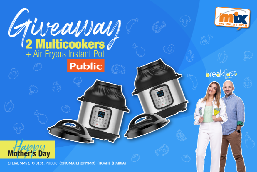 Με αφορμή την Γιορτή της Μητέρας το Breakfast Show και τα καταστήματα Public κάνουν δώρο σε 2 ακροατές από ένα Multicooker + Air Fryers Instant Pot.