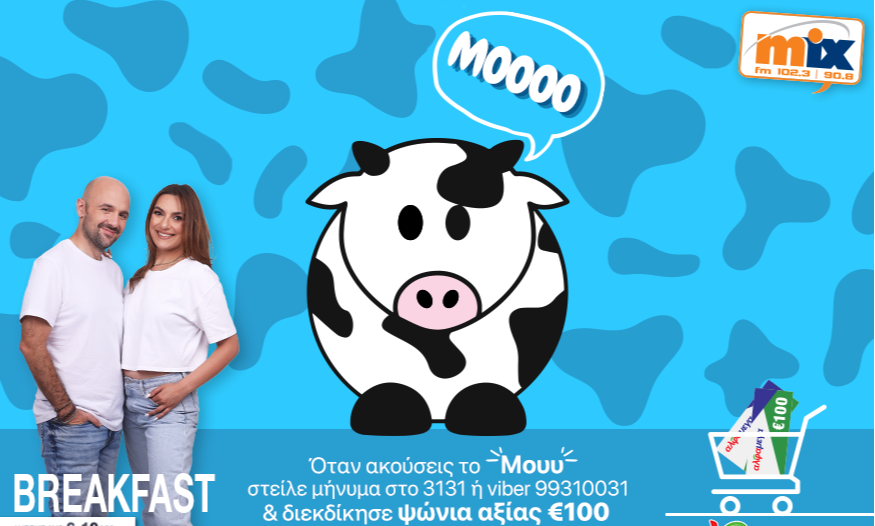 Back to reality με δωροεπιταγές για ψώνια από τις Alphamega Hypermarkets ! Συντονίσου στο The Mix FM Breakfast Show και μόλις ακούσεις το «Μουυυ» στείλε μήνυμα στο 3131 ή viber 99310031 με την ένδειξη Μιξελινα_Ονοματεπώνυμο_Πόλη και ηλικία και διεκδίκησε ψώνια αξίας €100 από τις Αλφαμεγα κάθε βδομάδα!