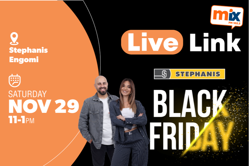 Συντονιστείτε μαζί μας το Σάββατο 29 Νοεμβρίου από τις 11.00 μέχρι τις 13.00, όπου θα αποκαλύπτουμε ζωντανά τις προσφορές του Black Friday από το κατάστημα Stephanis στην Έγκωμη!