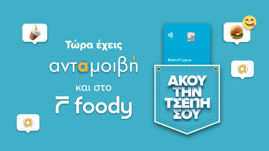 Τώρα έχεις ανταμοιβή και στο Foody! Απλά πλήρωσε με κάρτες της Τράπεζας Κύπρου.