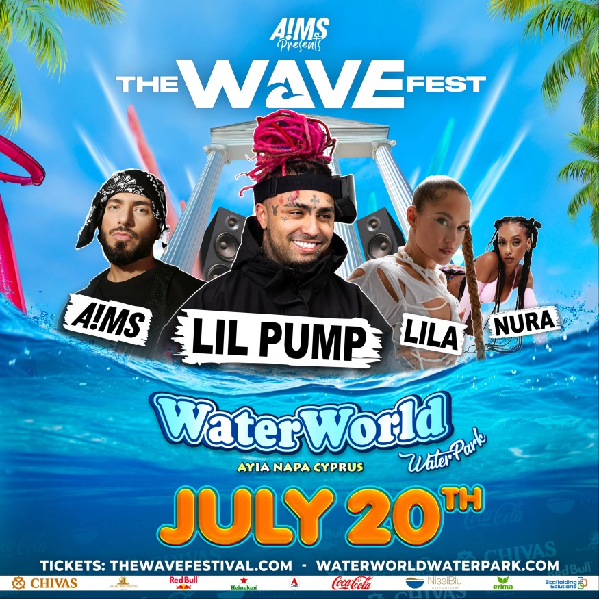 Το πιο εντυπωσιακό καλοκαιρινό festival του νησιού είναι γεγονός! Το Wave Fest επιστρέφει στο WaterWorld Waterpark στην Αγία Νάπα, αυτή τη φορά με έναν από τους πιο αναγνωρίσιμους παγκοσμίως ράπερ, τον Lil Pump. Την Κυριακή 20 Ιουλίου, το διεθνούς φήμης αστέρι, γνωστό για επιτυχίες όπως το “Gucci Gang”, ανεβαίνει στη σκηνή του WaterWorld για μια εκρηκτική εμφάνιση που υπόσχεται να μείνει αξέχαστη. Στη σκηνή θα ανέβουν επίσης ο εκρηκτικός A!MS, η ταλαντούχα Lila και η ξεχωριστή Nura, σε ένα πρόγραμμα γεμάτο ρυθμό, ένταση και καλοκαιρινή διάθεση.