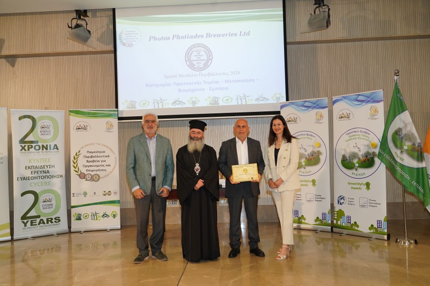 Η Photos Photiades Breweries, μέλος του Ομίλου Φώτος Φωτιάδης, τιμήθηκε για 2η συνεχή χρονιά με το Χρυσό Βραβείο «Προστάτης του Περιβάλλοντος», επιβεβαιώνοντας τη σταθερή και ισχυρή δέσμευση της στη βιώσιμη ανάπτυξη και την περιβαλλοντική ευθύνη.