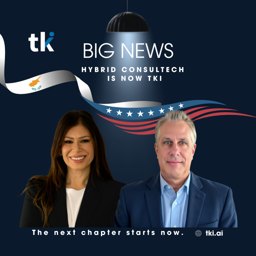 Μετά από μια επιτυχημένη χρονιά συνεργασίας στο πλαίσιο ενός joint venture, η Αμερικανική TKI και η Κυπριακή Hybrid ConsulTech συγχωνεύουν τις δραστηριότητές τους και θα λειτουργούν επισήμως υπό την ενιαία επωνυμία TKI. Η συγχώνευση εναρμονίζει πλήρως τις διεθνείς τους δραστηριότητες και επιβεβαιώνει την κοινή τους φιλοσοφία για παροχή λύσεων τεχνητής νοημοσύνης (AI) επιχειρησιακής κλάσης.
