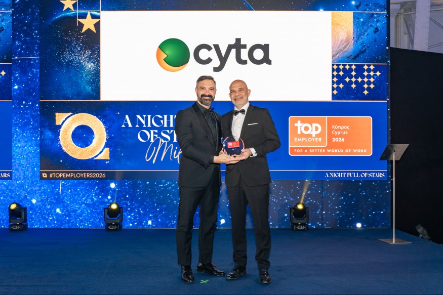 Η Cyta συγκαταλέγεται στους Top Employers για το 2026, λαμβάνοντας πιστοποίηση στις κατηγορίες Public Sector & Government και Telecommunications από τον διεθνώς αναγνωρισμένο οργανισμό Top Employers Institute. Πρόκειται για μια διάκριση που αναγνωρίζει στην πράξη τον τρόπο με τον οποίο ο Οργανισμός επενδύει στους ανθρώπους του και στο εργασιακό περιβάλλον που δημιουργεί καθημερινά.