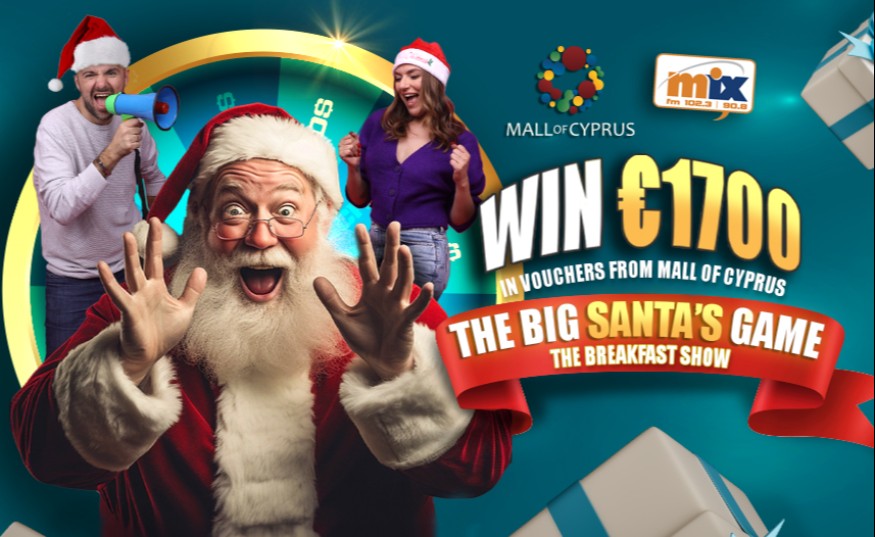 Από τις 4 Δεκεμβρίου μέχρι τα Χριστούγεννα συντονίσου καθημερινά στο the breakfast show με τους Ιωάννα Λαμπροπούλου και Πλατωνα Μουρατιδη, στείλε μήνυμα στο 3131 ή viber 99310031 με την ένδειξη Santa_ ονοματεπώνυμο _ πόλη και ηλικία και παίξε για να διεκδικήσεις ένα από τα 17 δώρα συνολικής αξίας €1700 από το mall of Cyprus!