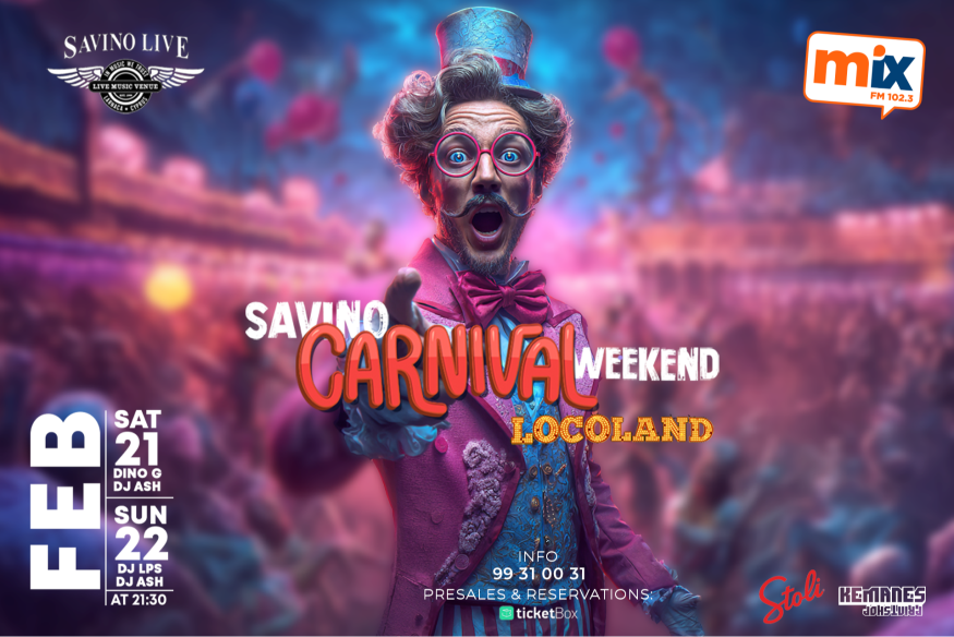 Ξέχνα τη λογική.Εδώ όλα είναι… LOCO! Ο Mix FM παρουσιάζει: LOCOLAND – Savino Carnival Weekend Δύο νύχτες.Ένα σκηνικό απόλυτης τ...