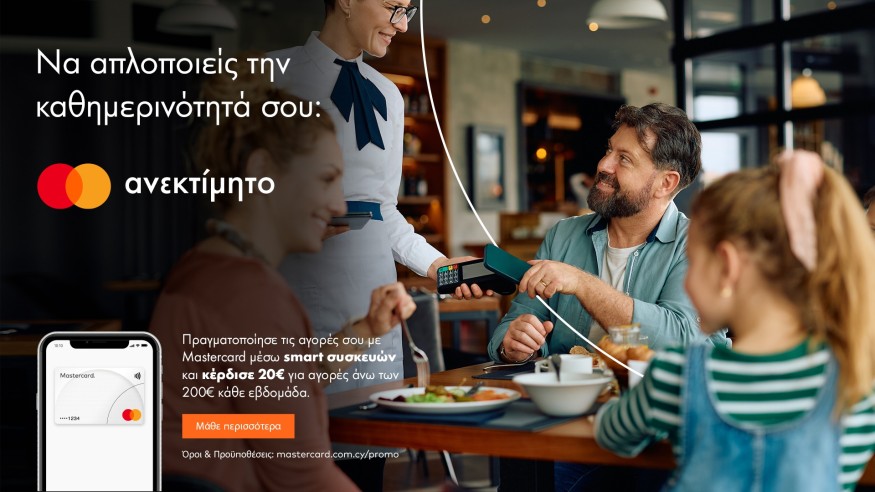 Σχετικά με τη Mastercard Η Mastercard (NYSE: MA), είναι μια εταιρεία τεχνολογίας που ενισχύει τις οικονομίες και ενδυναμώνει τους ανθρώπους σε περισσότερες από 200 χώρες και περιοχές παγκοσμίως. Σε συνεργασία με τους πελάτες της συντελεί στην οικοδόμηση βιώσιμων οικονομιών όπου όλοι μπορούν να ευημερήσουν. Προσφέρει ένα ευρύ φάσμα ψηφιακών λύσεων πληρωμών, εξασφαλίζοντας συναλλαγές που είναι ασφαλείς, απλές, έξυπνες και εύκολα διαθέσιμες. Η τεχνολογία και η καινοτομία που εφαρμόζει, μαζί με τις συνεργασίες και το δίκτυο που έχει αναπτύξει, προσφέρουν ένα μοναδικό σύνολο προϊόντων και υπηρεσιών που βοηθούν τους ανθρώπους, τις επιχειρήσεις και τις κυβερνήσεις να αξιοποιήσουν στο μέγιστο τις δυνατότητές τους. http://www.mastercard.com/