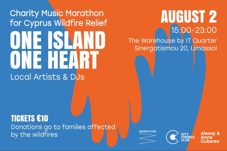 Λεμεσός, Κύπρος – Ο τομέας διοργάνωσης εκδηλώσεων στην Κύπρο ενώνεται, υπό την ηγεσία του The Warehouse by IT Quarter, σε συνεργασία με τη φιλανθρωπική οικολογική οργάνωση City Friends Club και την οικογένεια Άννα και Alexey Gubarev, για να διοργανώσουν τον φιλανθρωπικό μουσικό μαραθώνιο «Ένα Νησί, Μία Καρδιά» το Σάββατο, 2 Αυγούστου.