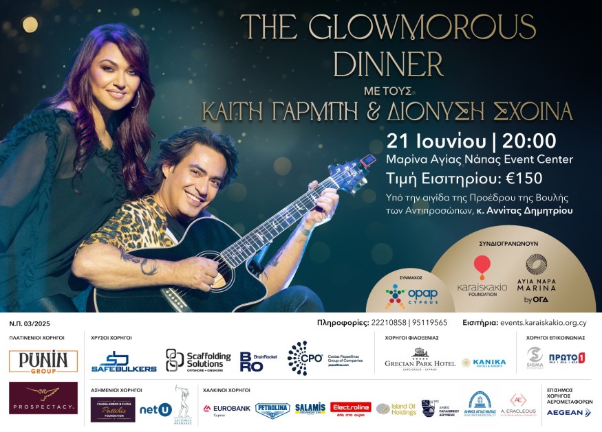 Το Καραϊσκάκειο Ίδρυμα και η Μαρίνα Αγίας Νάπας συνδιοργανώνουν για δεύτερη συνεχή χρονιά το Φιλανθρωπικό Δείπνο «The Glowmorous Dinner», το οποίο θα πραγματοποιηθεί το Σάββατο 21 Ιουνίου 2025, στις 20:00, στο Event Center της Μαρίνας Αγίας Νάπας.