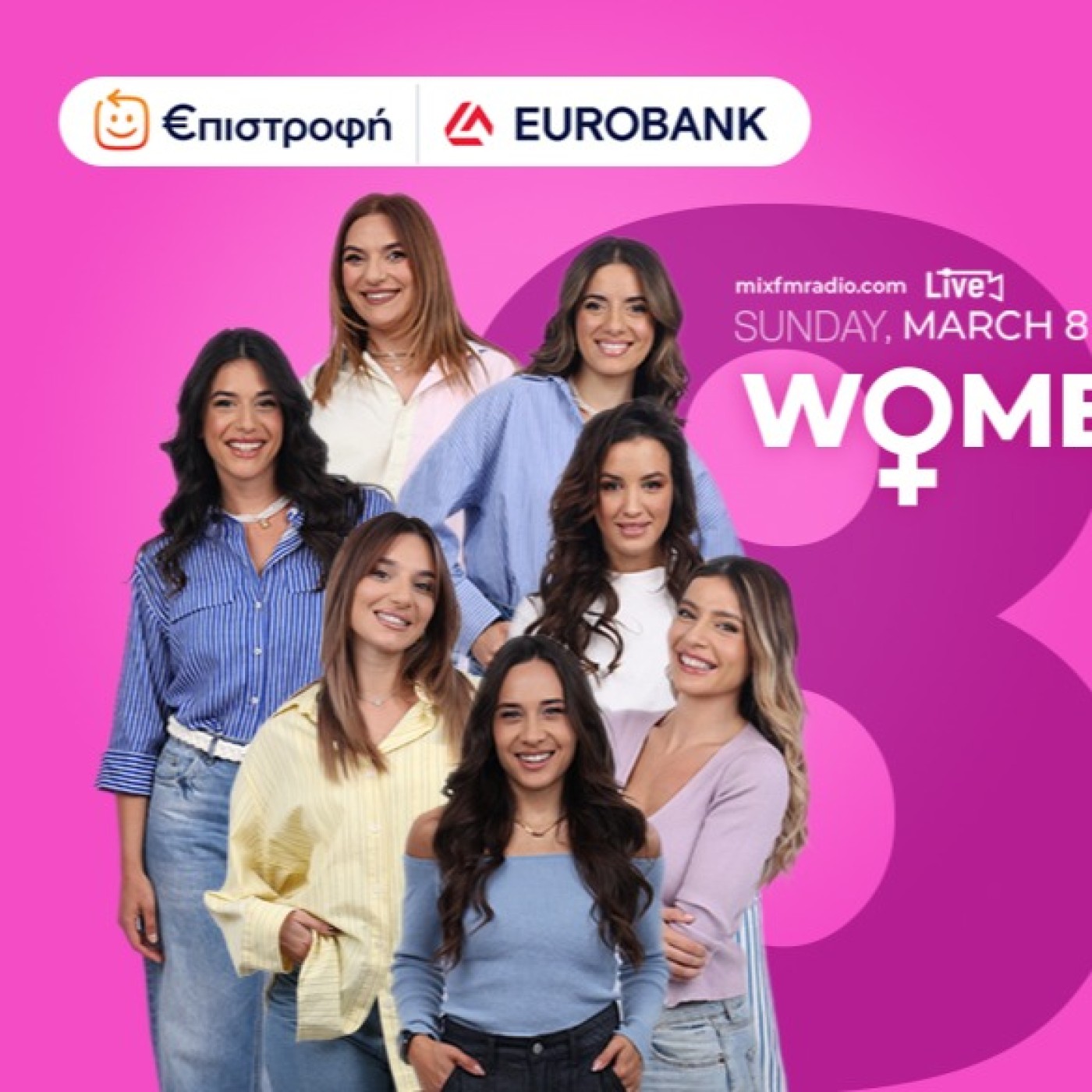 Την Κυριακή 8 Μαρτίου, από τις 11:00 έως τις 14:30, παρακολουθήστε ζωντανά τα Women’s Day Podcasts του Mix FM στο Watch Live του mixfmradio.com.